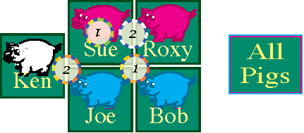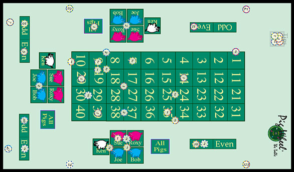 "3 Pig" bet: A bet that Ken, Sue or Joe will show as a win from the spin.